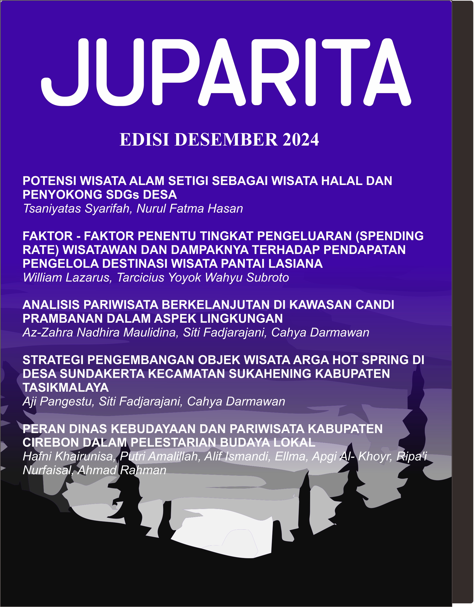 Objek Wisata Arga Hot Spring merupakan objek wisata baru yang berada di Desa Sundakerta Kecamatan Sukahening Kabupaten Tasikmalaya. Objek wisata ini memiliki potensi alam dan buatan berupa kolam pemandain air panas, pohon pinus dan area camping. Penelitian ini bertujuan untuk mengetahui bagaimana startegi pengembangan yang dapat dilakukan oleh pengelola objek wisata Arga Hot Spring. Penelitian ini menggunakan metode deskriptif kualitatif. Pengumpulan data dalam penelitian ini menggunakan observasi, wawancara, studi dokumentasi, dan studi pustaka. Hasil dari penelitian ini adalah setelah dilakukan observasi dan wawancara mengenai objek wisata Arga Hot Spring terdapat beberapa startegi pengembangan objek wisata yang dapat dilakukan oleh pengelola objek wisata Arga Hot Spring, seperti pengembangan infrastruktur, diversifikasi produk wisata, pelatihan dan pemberdayaan sumber daya manusia, pemanfaatan teknologi digital, dan penerapan konsep pariwisata berkelanjutan. Untuk penelitisn berikutnya dapat dilakukan mengenai eksistensi dari objek wisata Arga Hot Spring, karena setelah penelitian ini dilakukan apakah strategi pengembangan wisata tersebut berjalan dengan baik atau tidak.